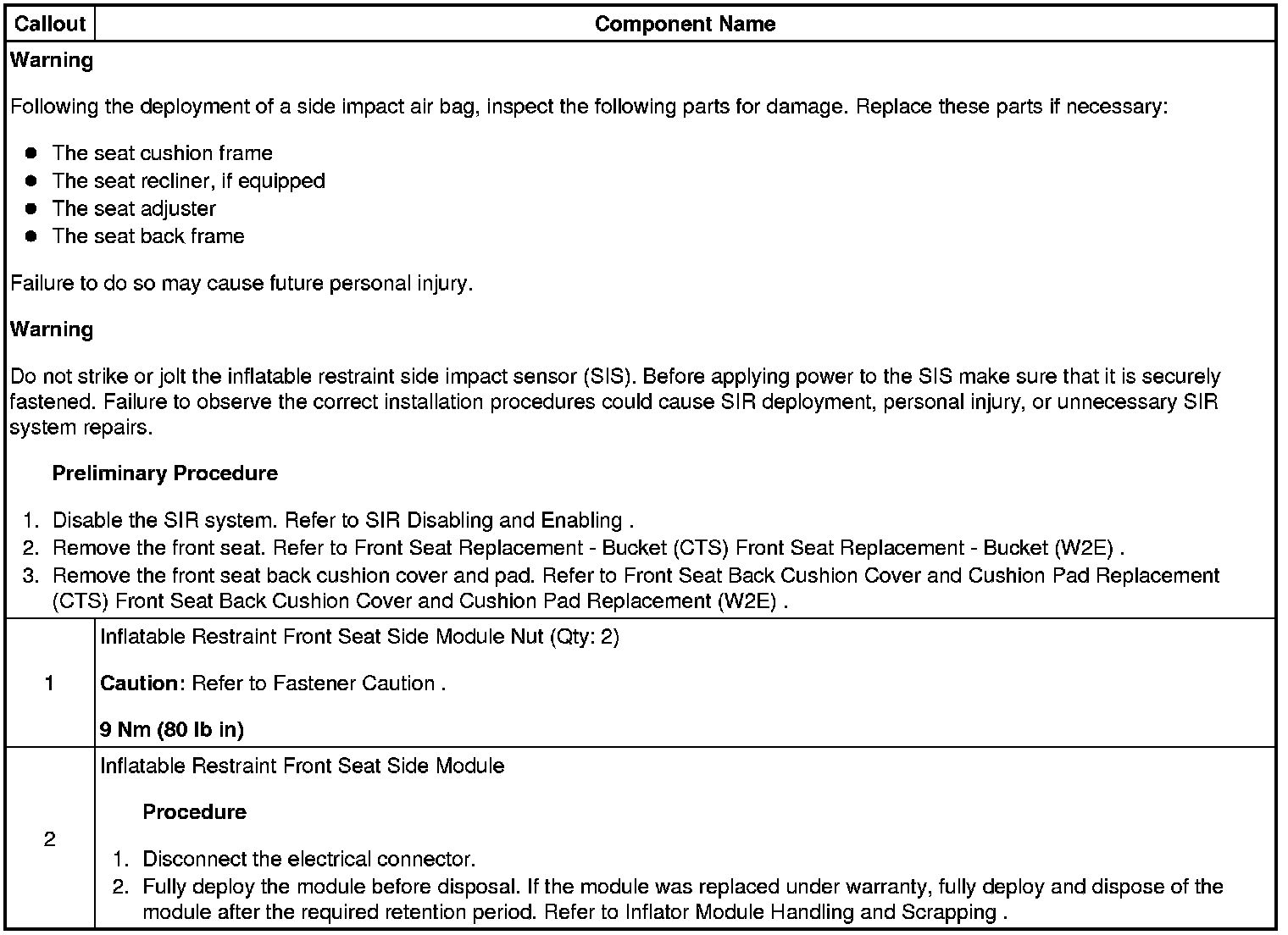 Driver or Passenger Seat Side Inflatable Restraint Module Replacement (CTS)