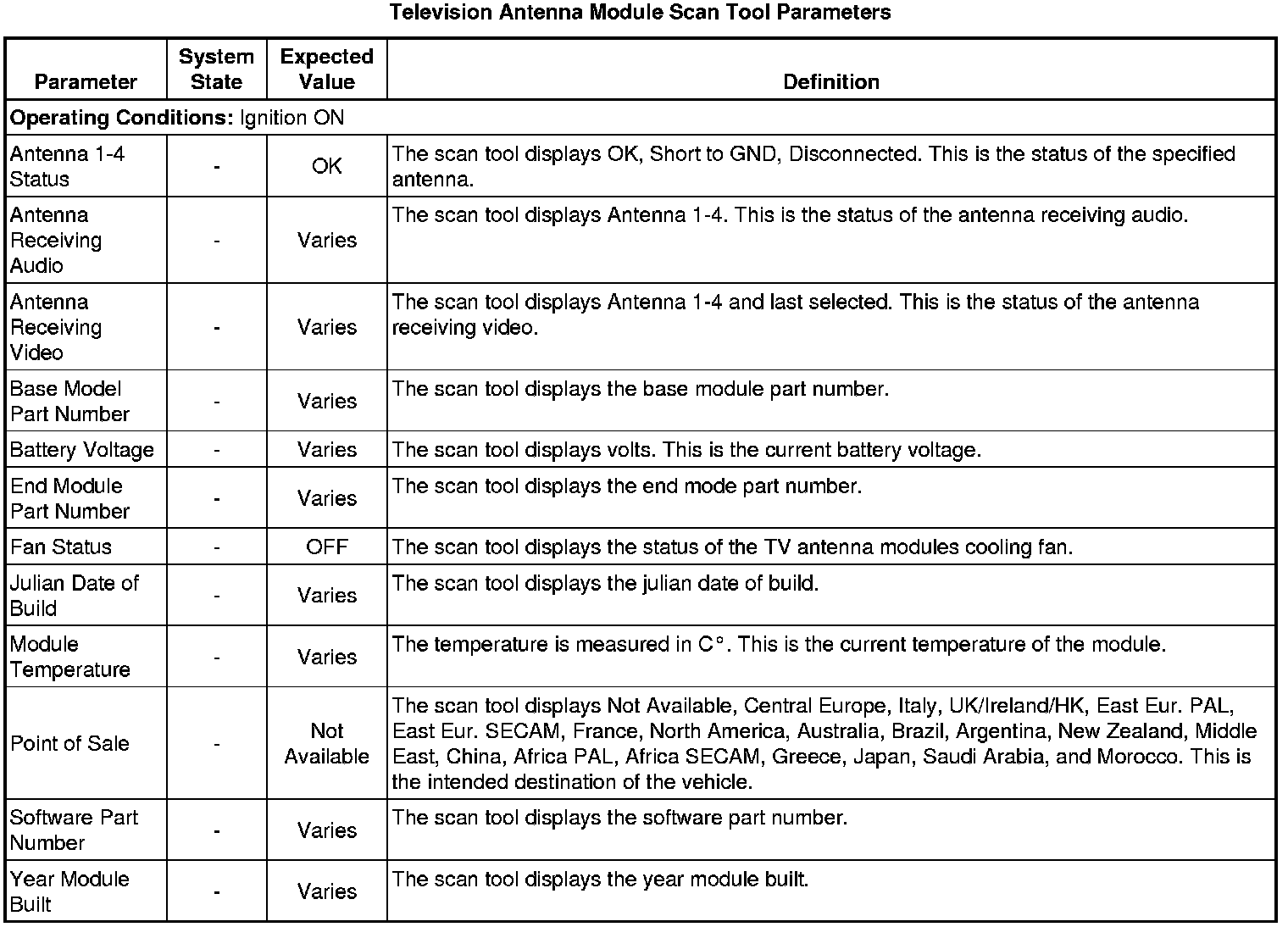 Television Antenna Module Scan Tool Information