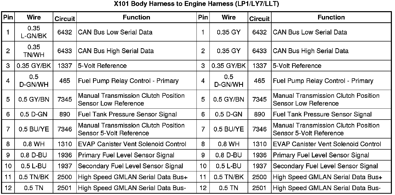 X101 Body Harness to Engine Harness (LP1/LY7/LLT)