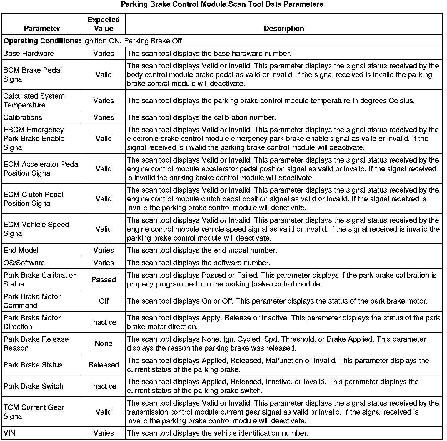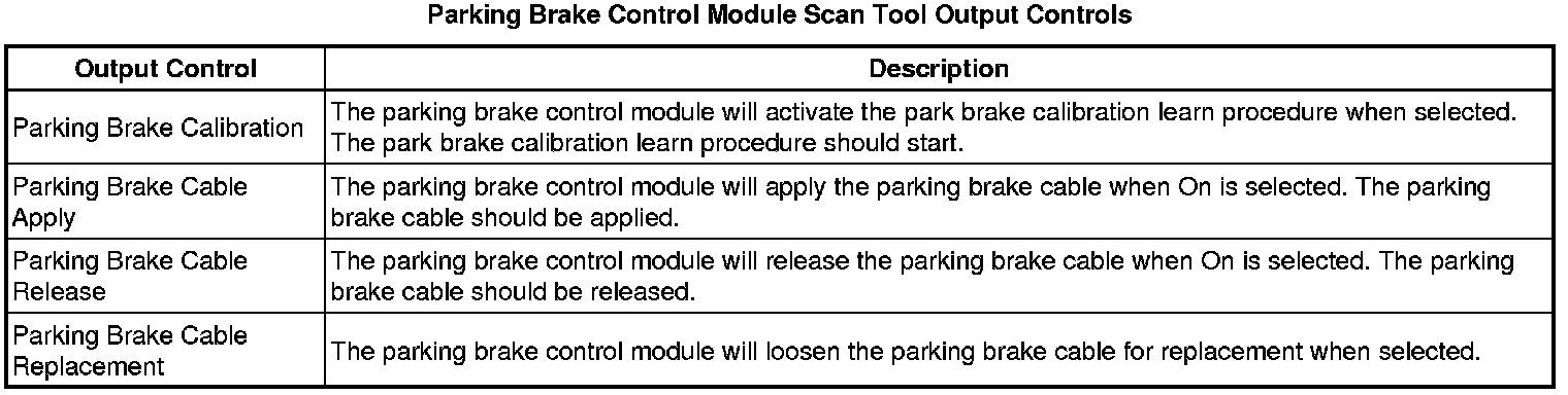 Electronic Parking Brake Control Module Scan Tool Information