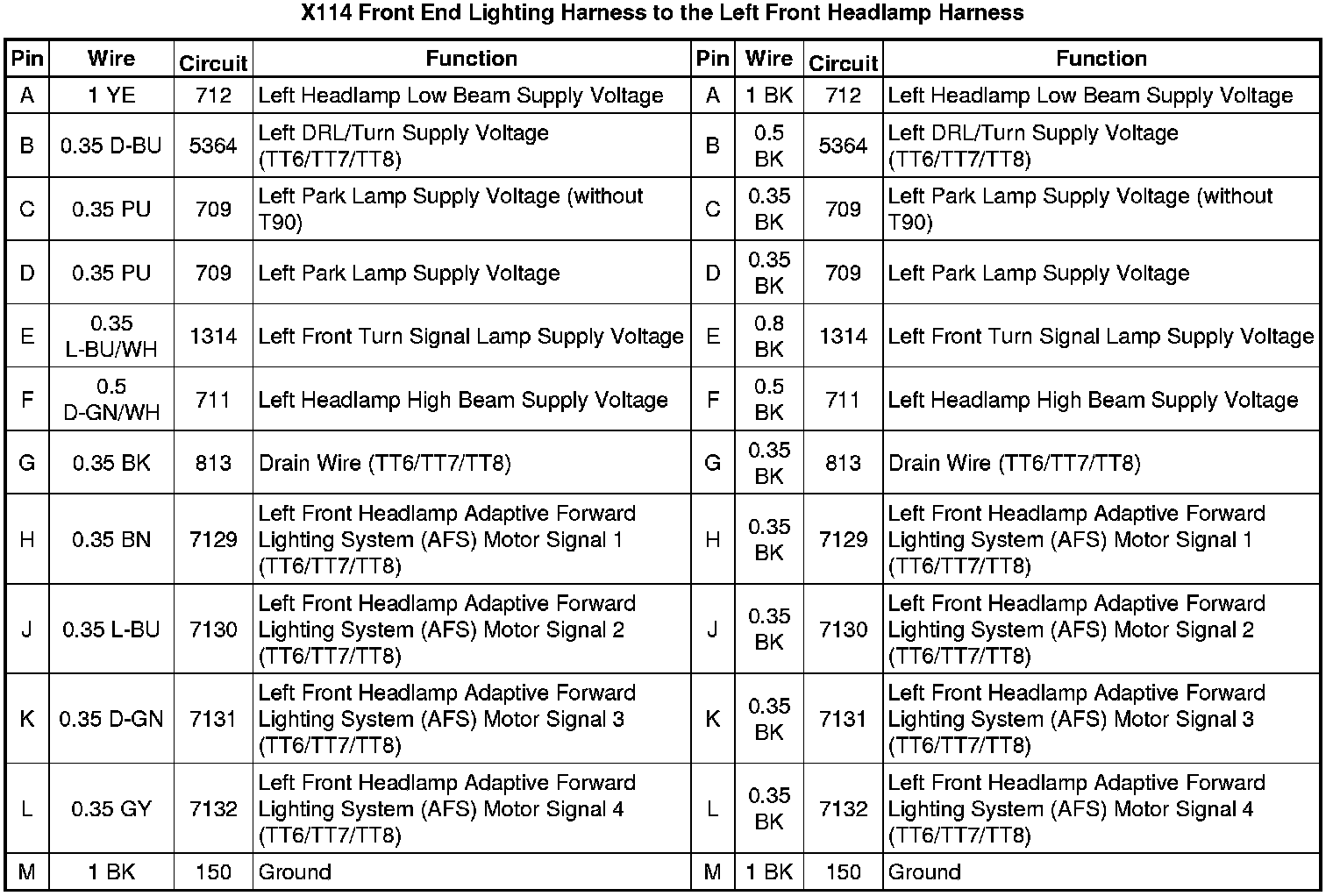 X114 Front End Lighting Harness to the Left Front Headlamp Harness