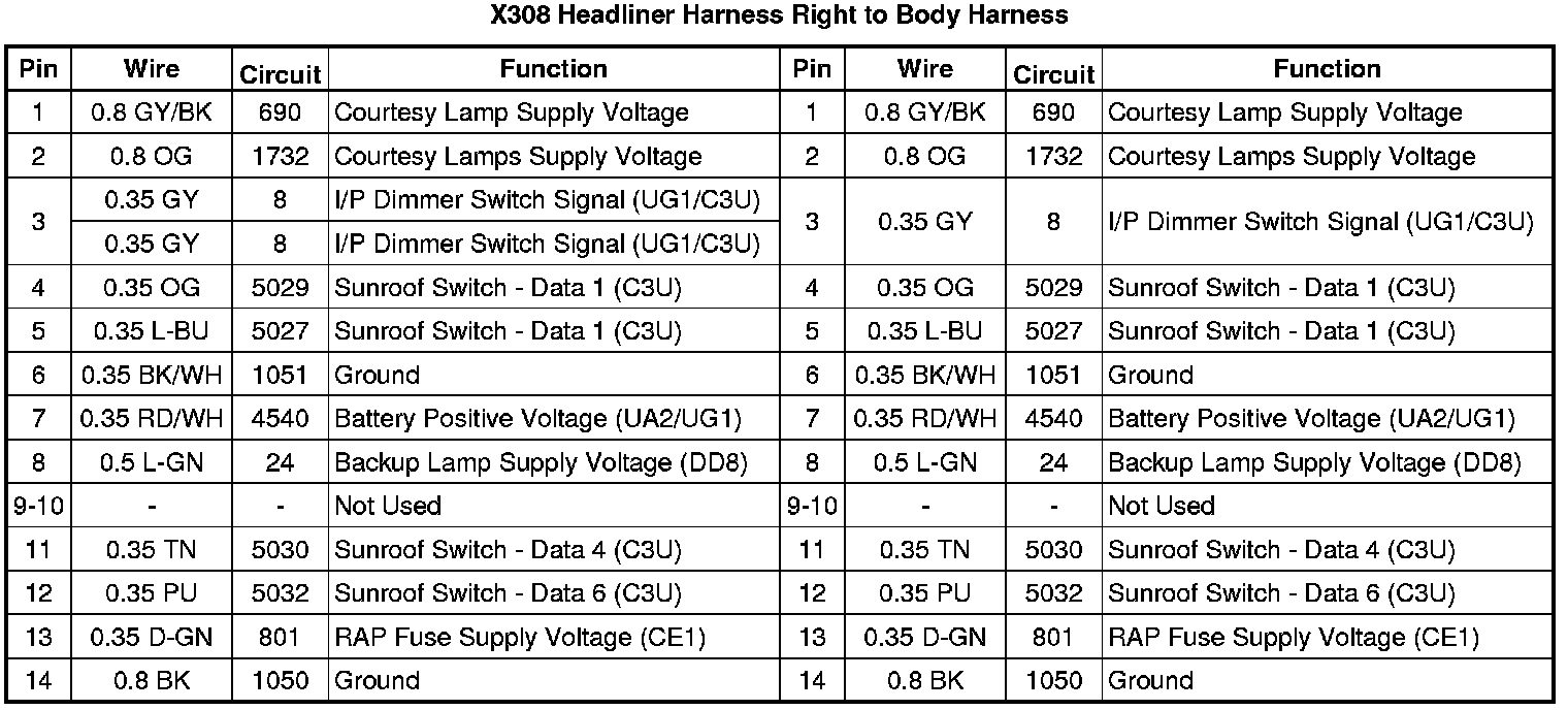 X308 Headliner Harness Right to Body Harness
