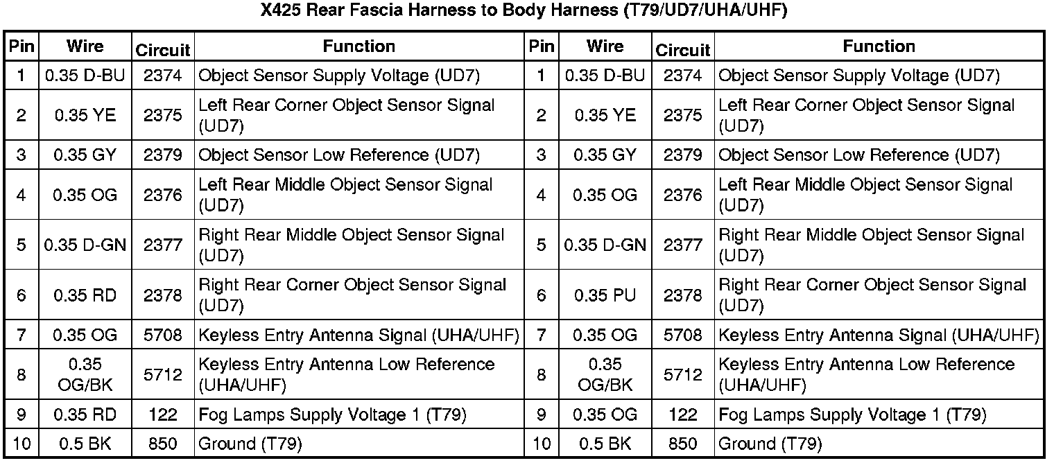X425 Rear Fascia Harness to Body Harness (T79/UD7/UHA/UHF)