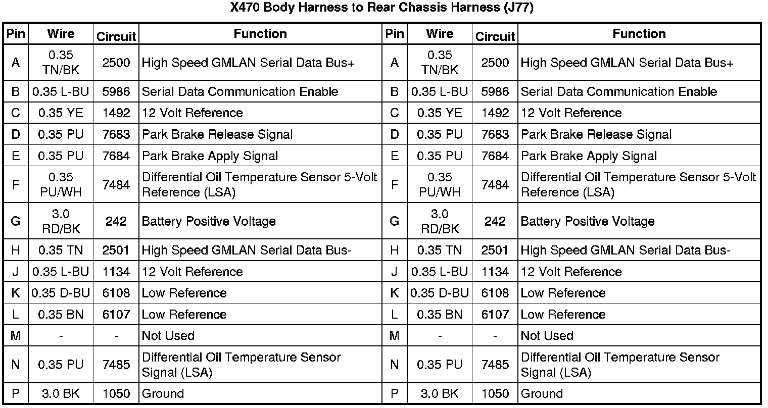 X470 Body Harness to Rear Chassis Harness (J77)