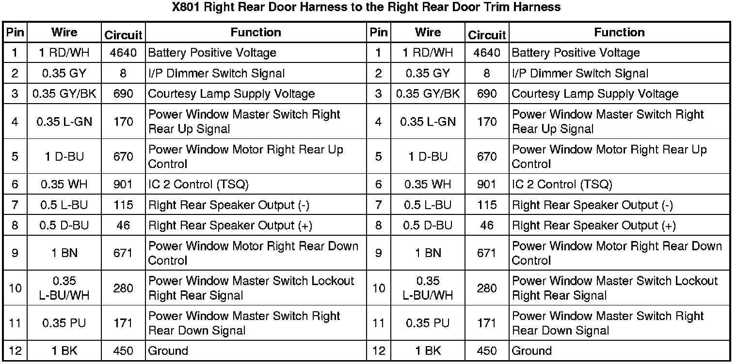 X801 Right Rear Door Harness to the Right Rear Door Trim Harness