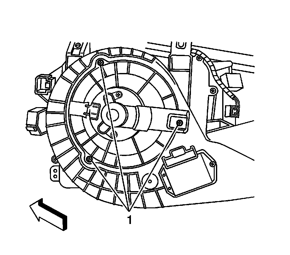 2. Install the blower motor screws (1) and tighten to 1.5 Nm (13 lb in).