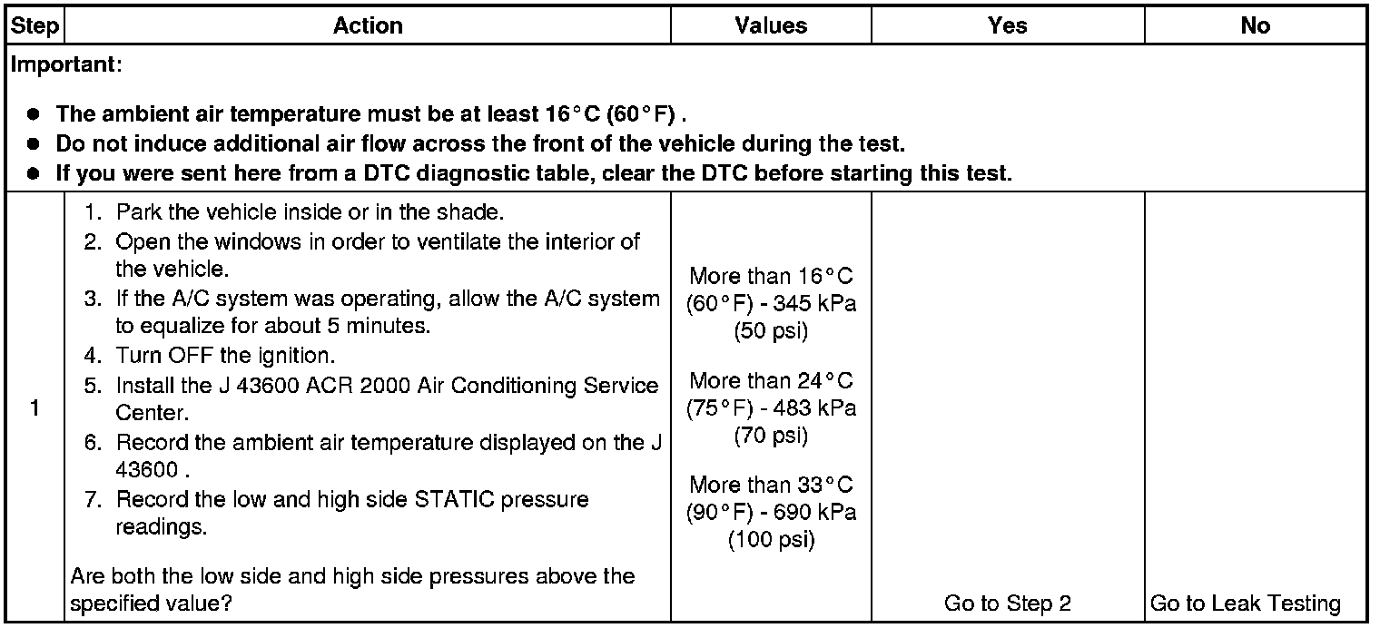 1. This step determines if the A/C system has at least the minimum refrigerant charge required to operate the system without damage.