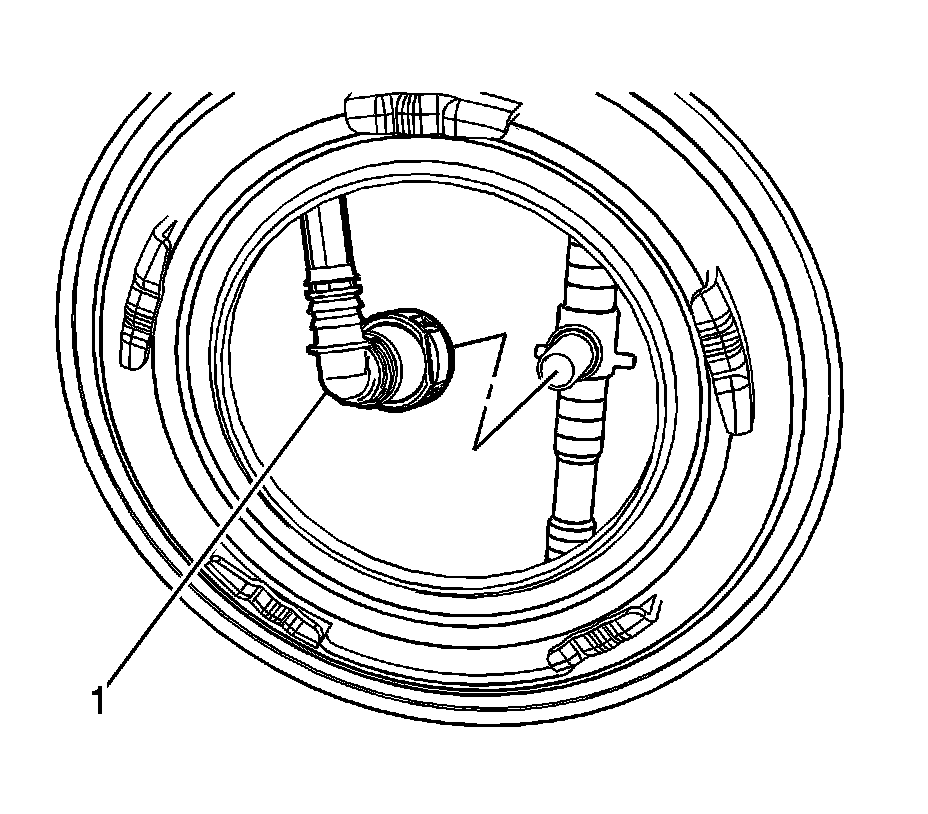 2. If replacing the remote pickup line assembly, Connect the transfer hose quick connect fitting (1). Refer to Plastic Collar Quick Connect Fitting Service (Plastic Collar Quick Connect Fitting Service).