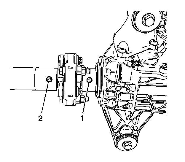 2. If the paint dots are aligned and the problem persists, rotate propshaft. The two parts can be mated together in three positions. If the matched position does not work. Unbolt the propshaft with transmission in neutral, rotate one position and re-bolt. Re-evaluate in that position. If not acceptable, unbolt prop with trans in neutral again, rotate once more in the same direction to evaluate the third position. Drive the vehicle to verify that the condition is resolved.