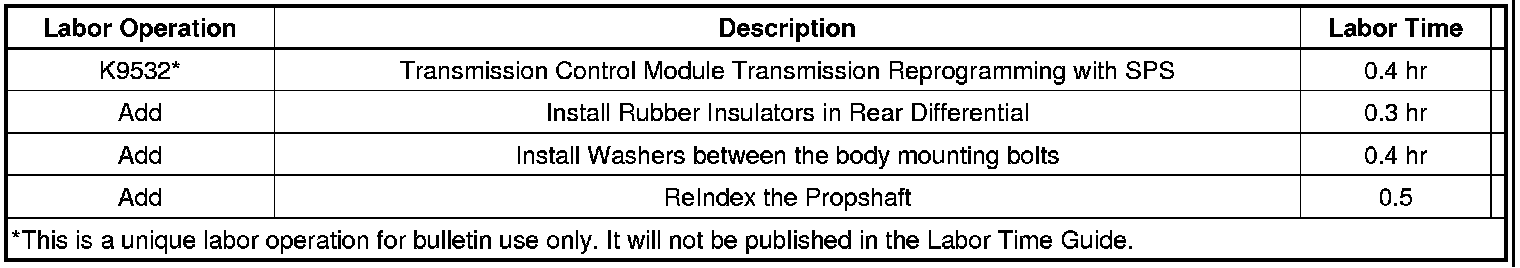 - DO NOT replace rear drive axle or propshaft for this concern.
