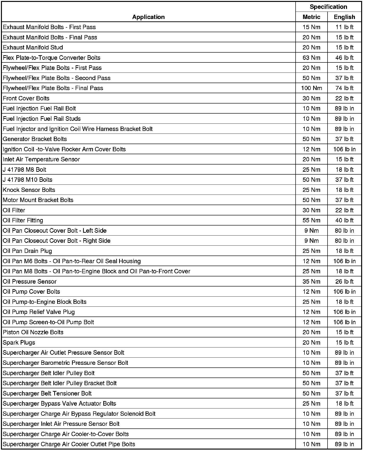 Fastener Tightening Specifications