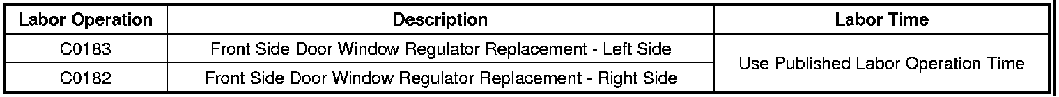 Replace the affected power window regulator with the revised part listed below. Refer to Front Side Door Window Regulator Replacement in SI.