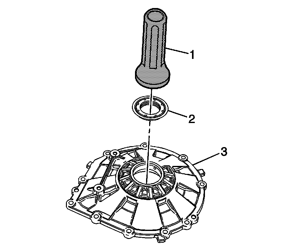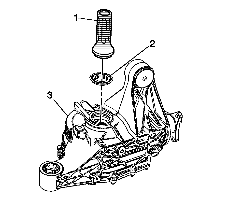 2. Using the J 45017 (2), install the axle oil seal (2) into the housing (3).