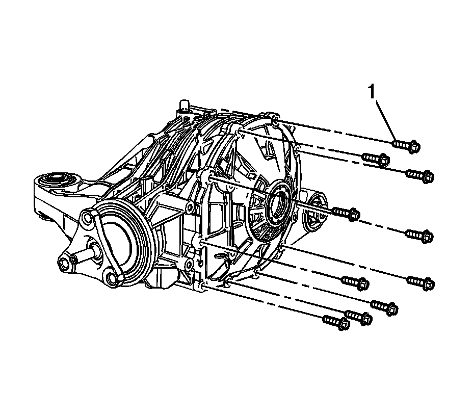 7. Install the 9 differential side cover bolts (1) and tighten in a criss-cross pattern to 25 Nm (18 lb ft).