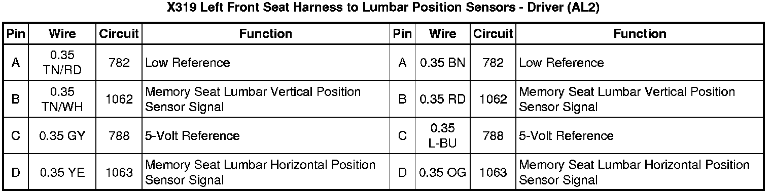 X319 Left Front Seat Harness to Lumbar Position Sensors - Driver (AL2)