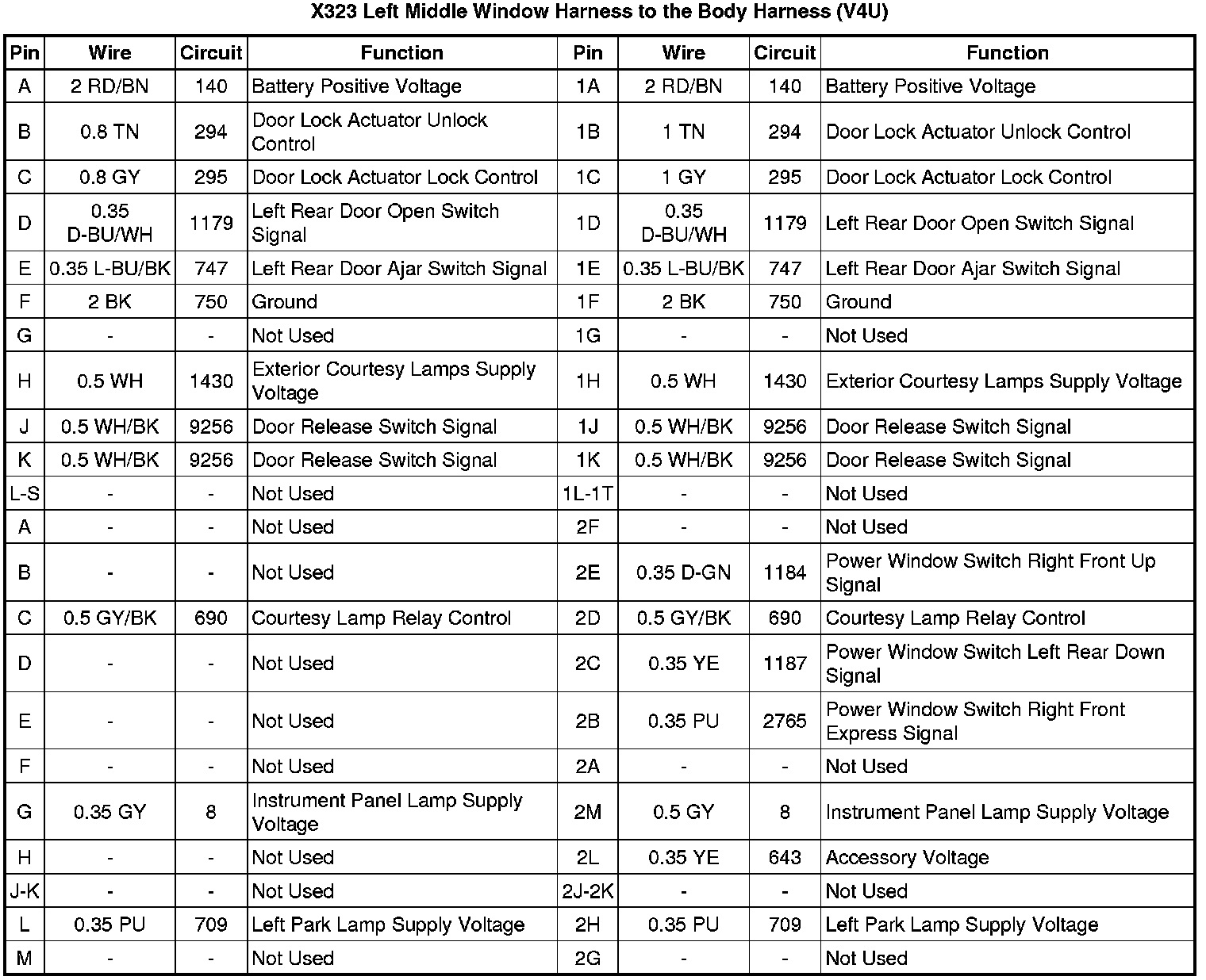X323 Left Middle Window Harness to the Body Harness (V4U)