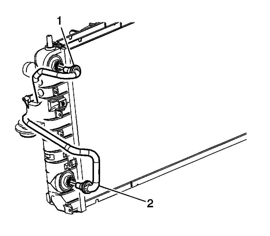 11. Remove the engine oil cooler lines (1, 2) from the radiator, if equipped.