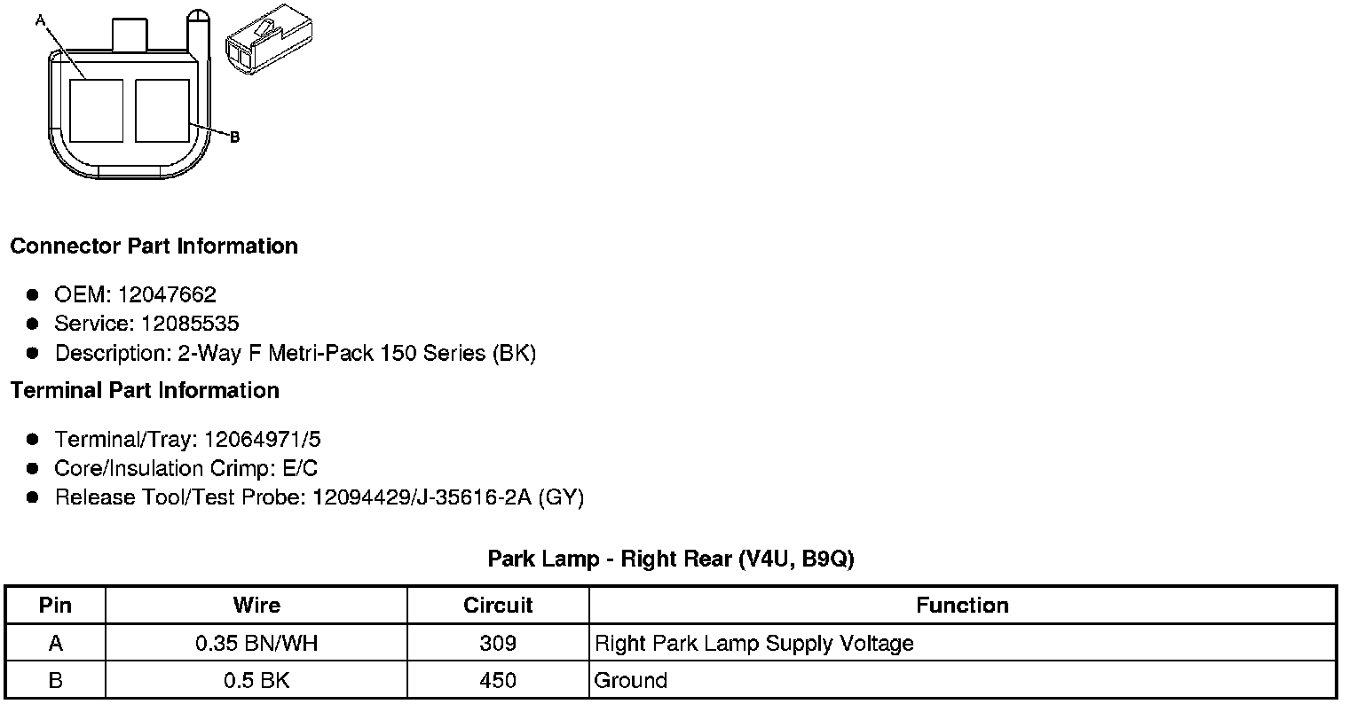 Park Lamp - Right Rear (V4U, B9Q)