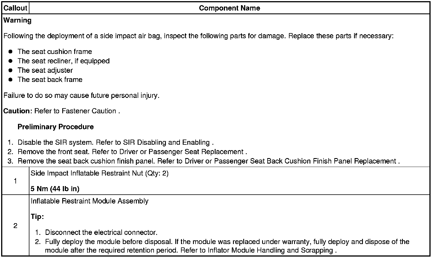Driver or Passenger Seat Side Inflatable Restraint Module Replacement