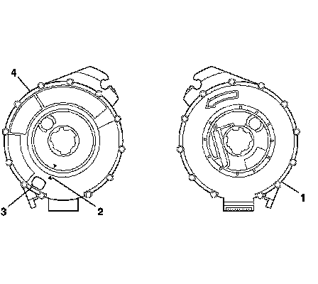 3. If the front (4) of the SIR coil has a centering window (3) and the back side (1) has NO spring service lock, perform the following steps: