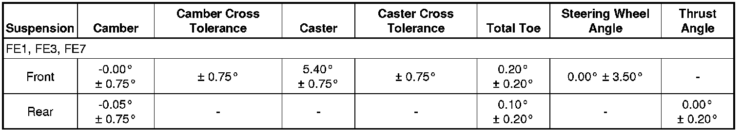 Wheel Alignment Specifications
