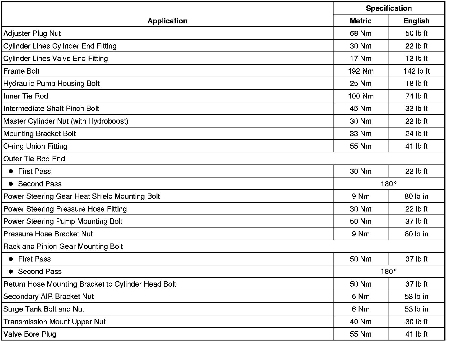 Fastener Tightening Specifications
