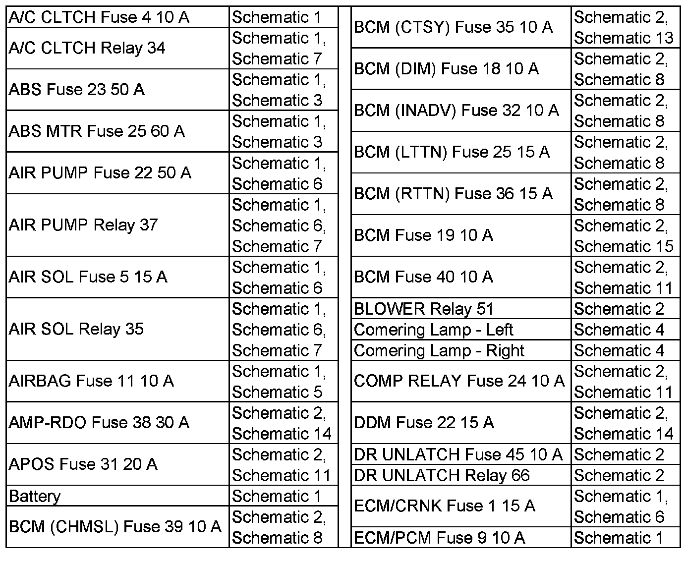 A/C CLTCH Fuse 4 10 A - ECM/PCM Fuse 9 10 A:
