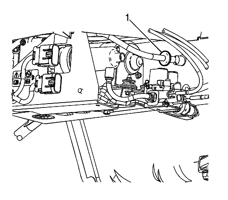 3. Disconnect the right and left air tubes (1) from the control solenoids.
