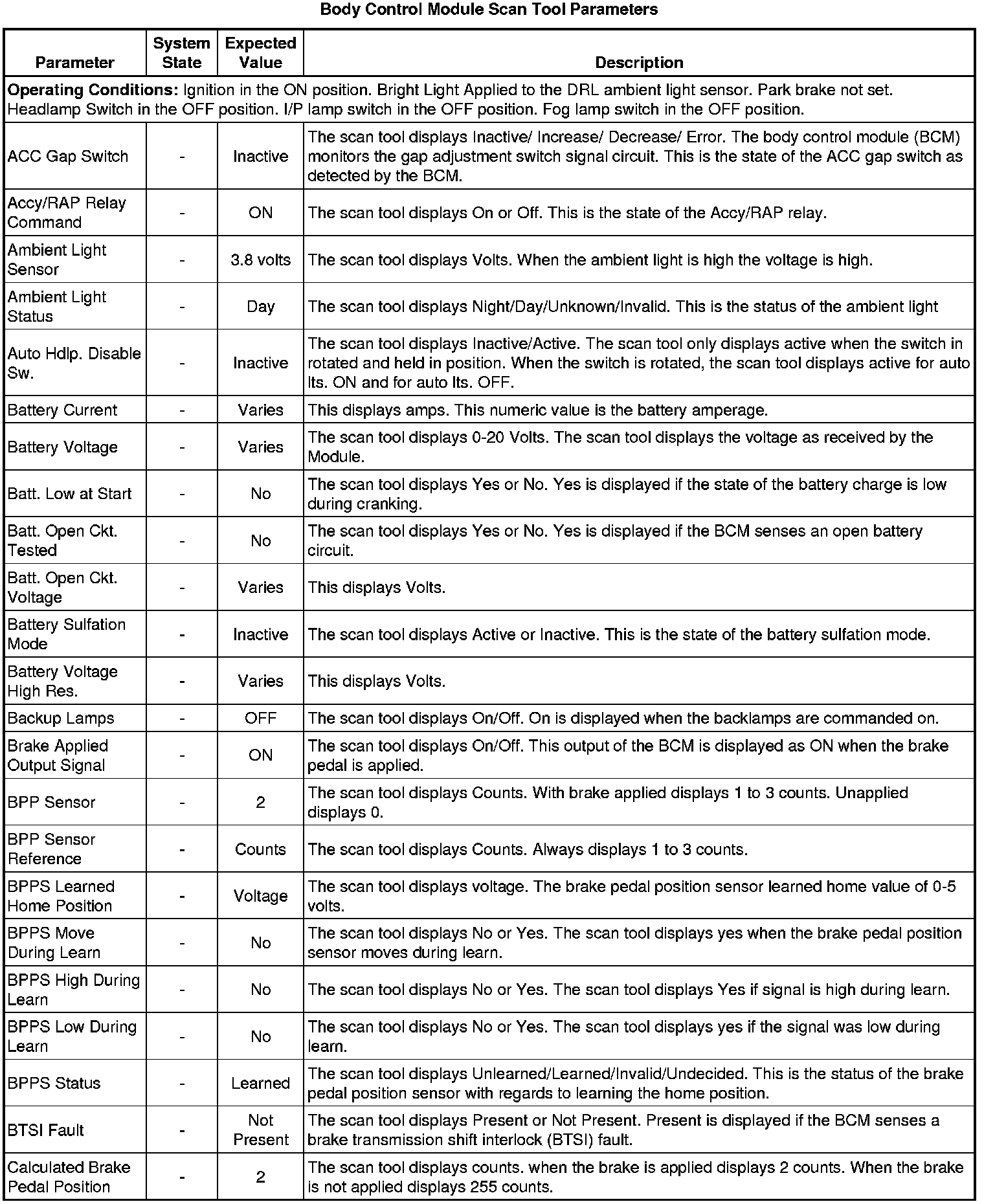Body Control Module Scan Tool Information