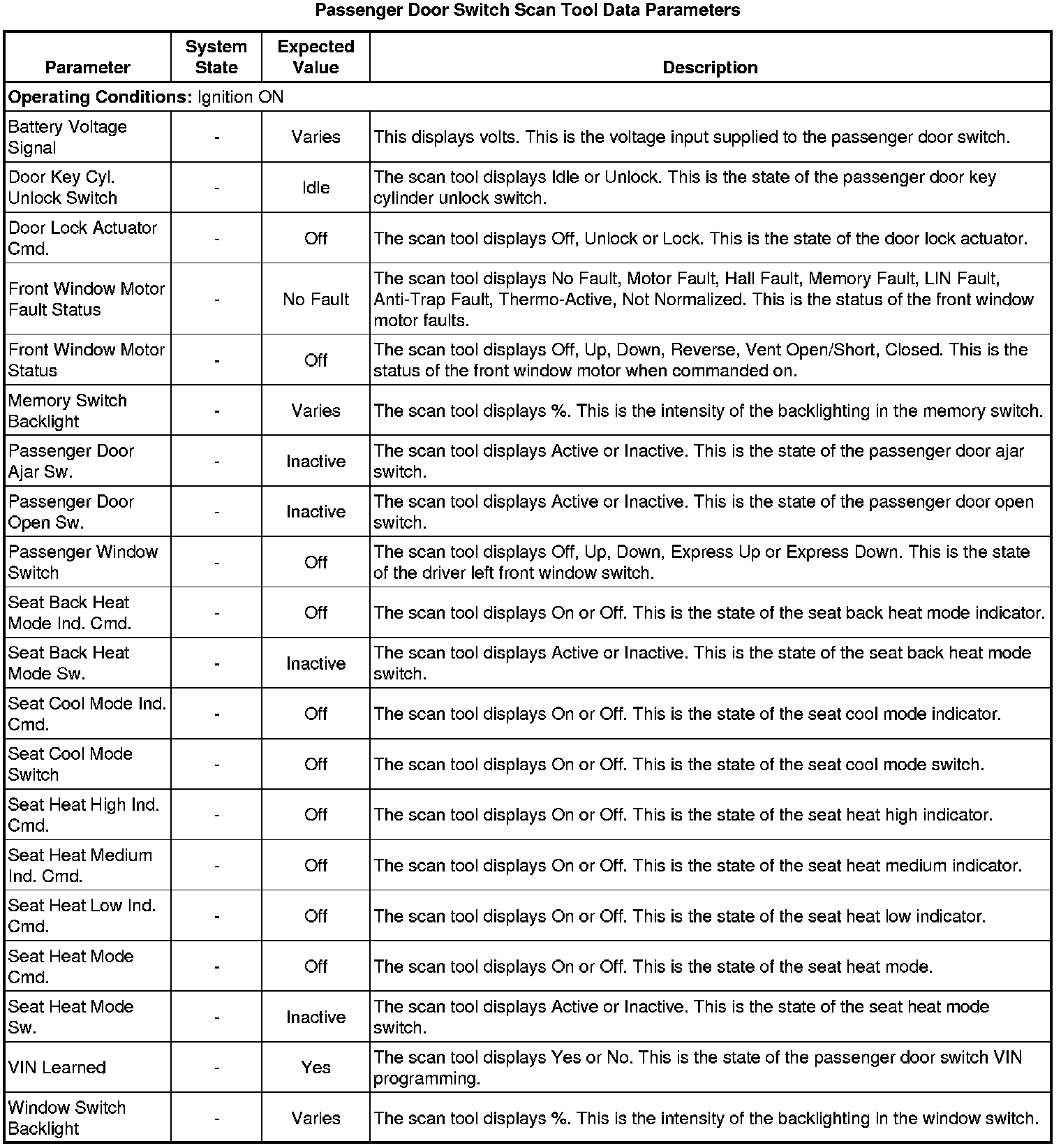 Door Lock Control Module Scan Tool Information (Passenger Door Switch)