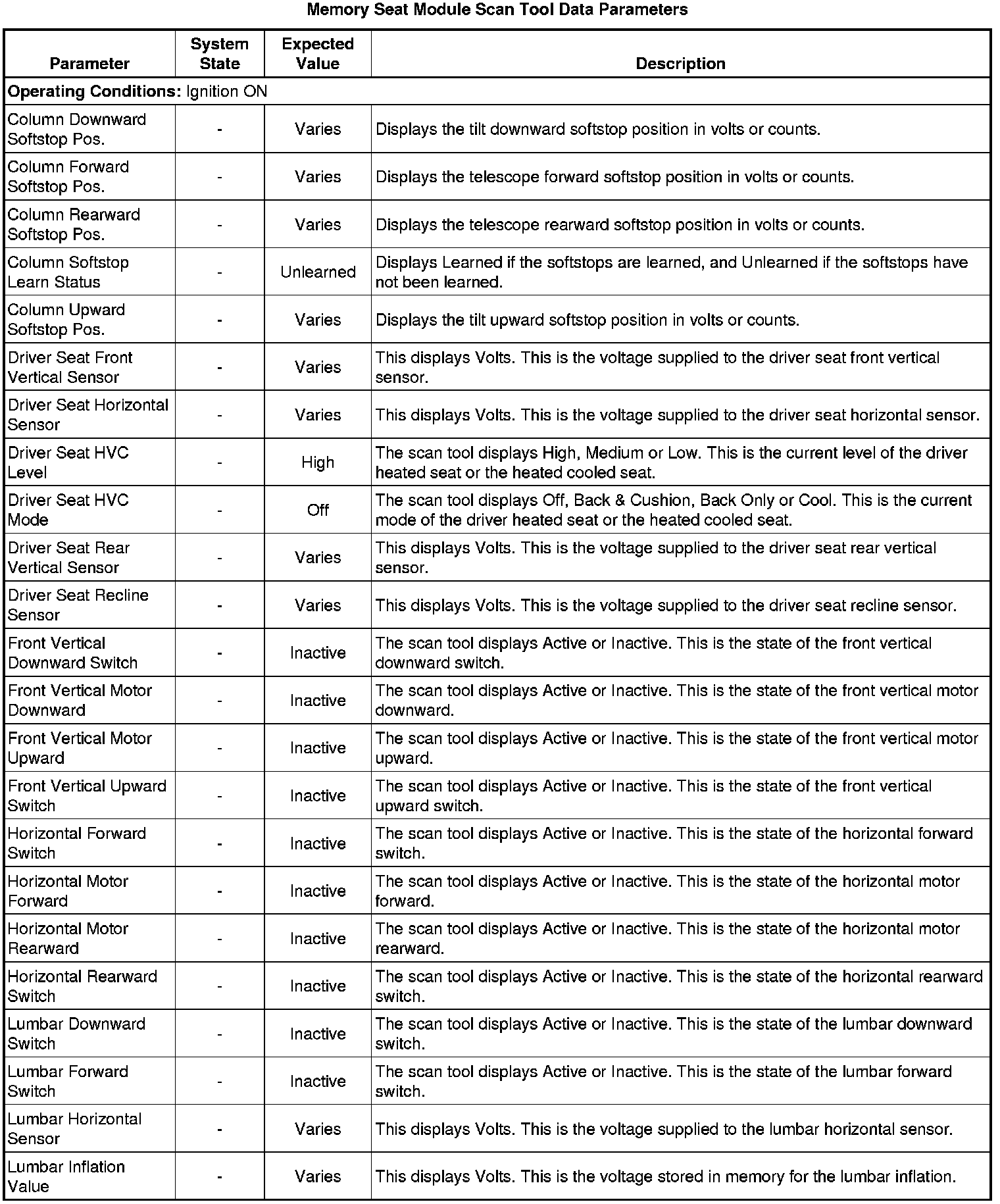 Driver Seat Adjuster Memory Module Scan Tool Information
