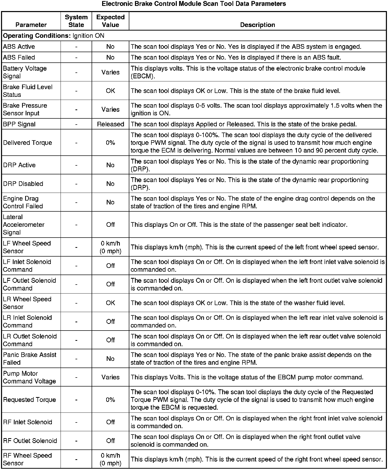 Electronic Brake Control Module Scan Tool Information