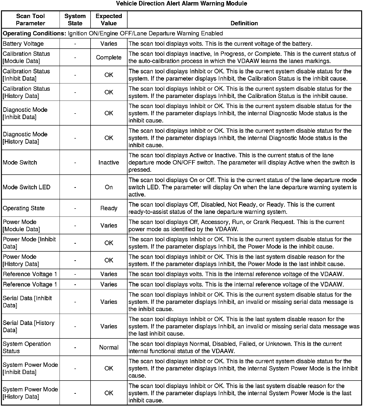 Vehicle Direction Alert Alarm Warning Module Scan Tool Information