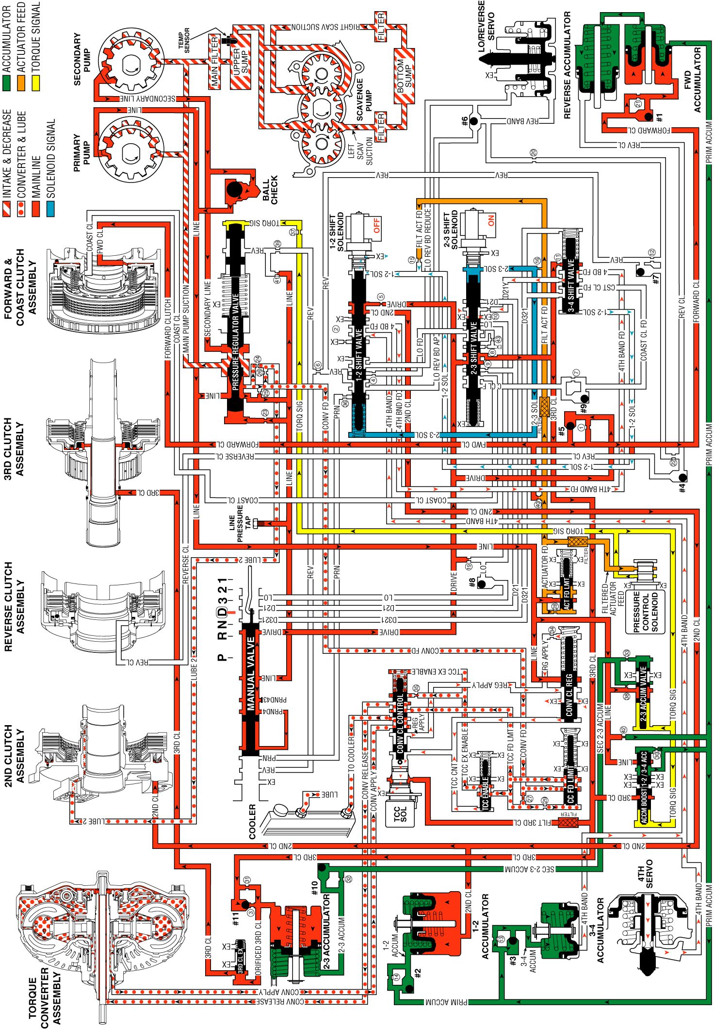 The change in throttle position (increase in percentage of travel) signals the PCM to increase the PC solenoid valve's OFF cycle time. When this occurs, higher filtered actuator feed pressure passes through the PC solenoid valve into the torque signal fluid passage.