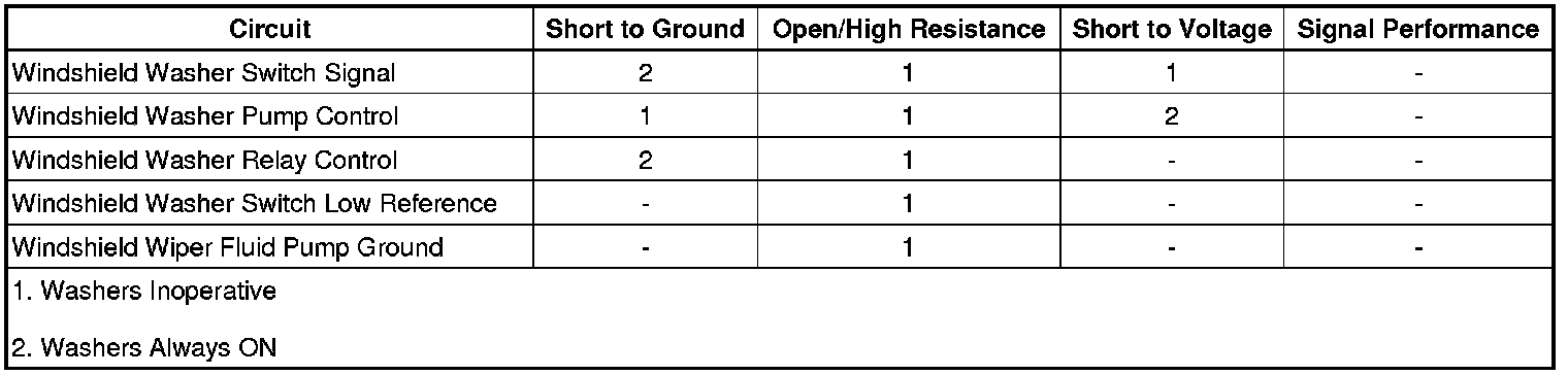2. Ignition ON, verify the windshield washer pump is not on.