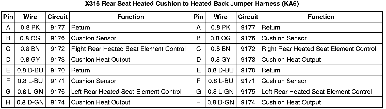 X315 Rear Seat Heated Cushion to Heated Back Jumper Harness (KA6)