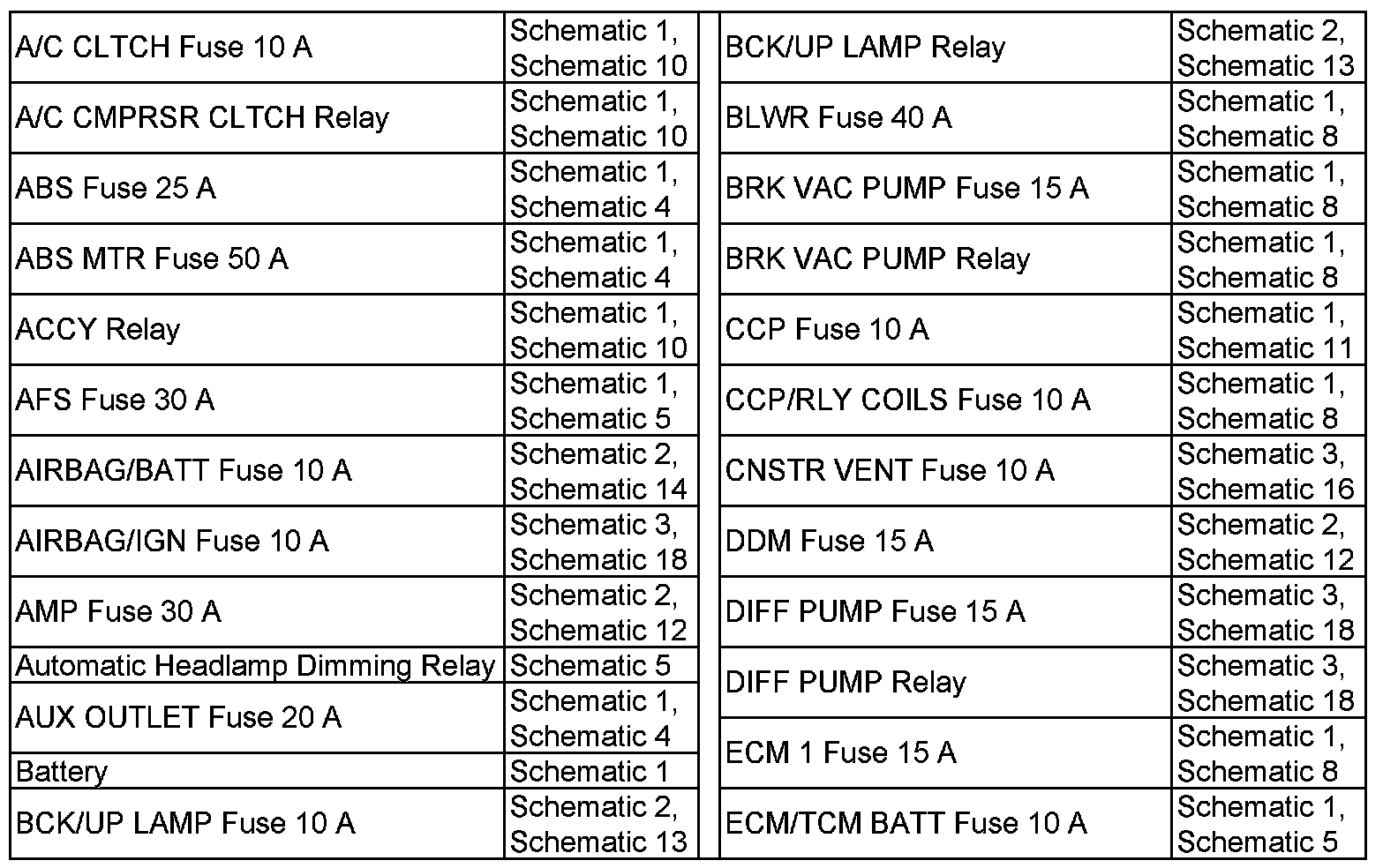 A/C CLTCH Fuse 10 A-ECM/TCM BATT Fuse 10 A: