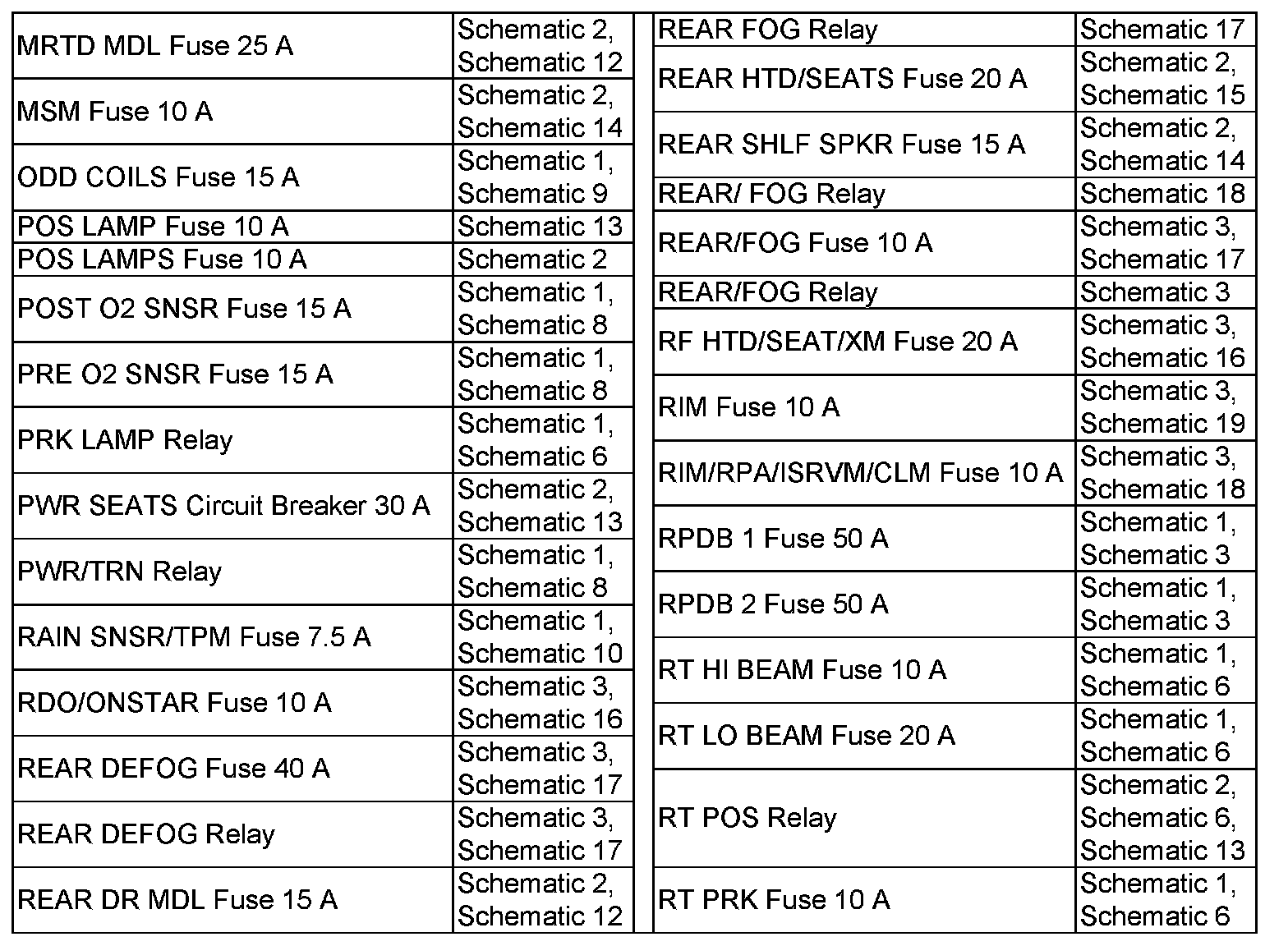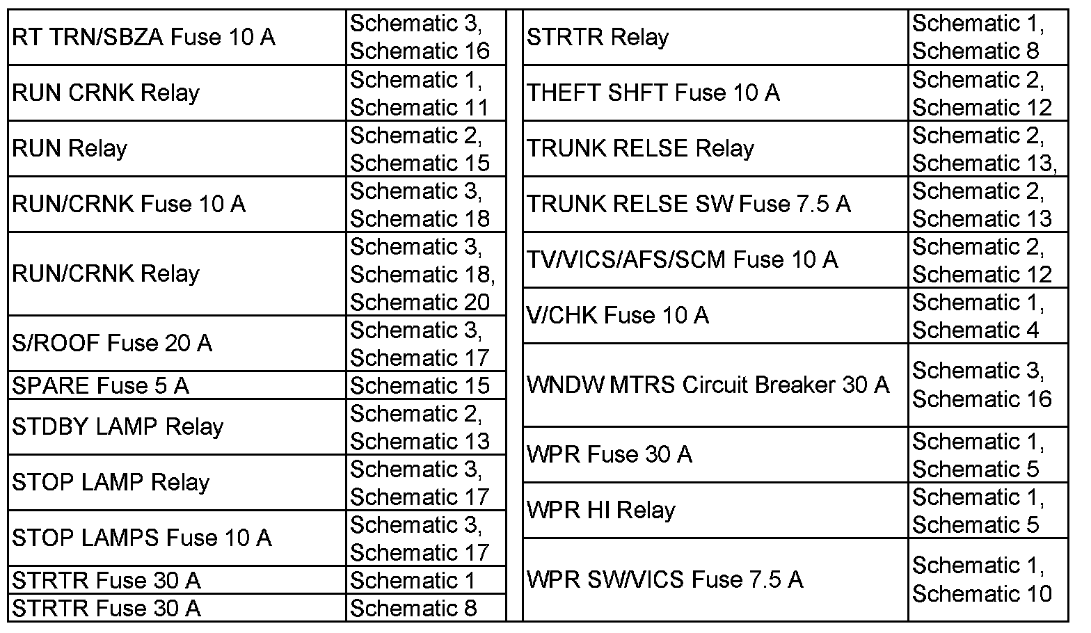 RT TRN/SBZA Fuse 10 A-WPR SW/VICS Fuse 7.5 A:
