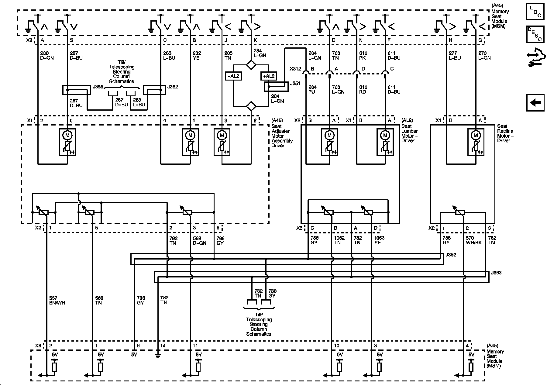 Memory Seat Module Power, Ground and DLC