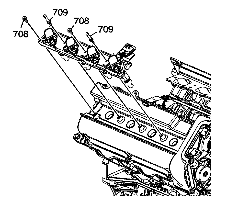 2. Remove the ignition coil assembly bolts (708) and ball studs (709).