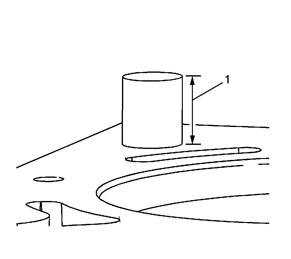 8. Ensure the NEW hex set stud is installed to the bottom of the hole and the end is flush or below (1) the surface of the engine block boss.
