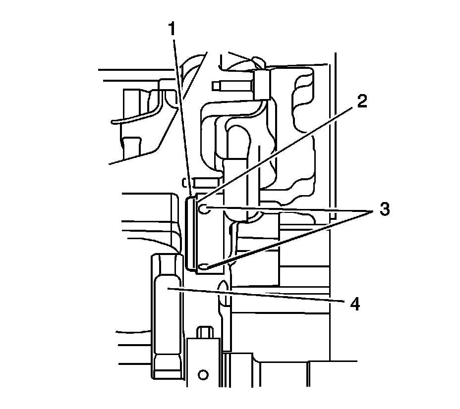 10. Ensure the plug (1) is properly seated to the flange (2) in the bore and will not interfere with the engine block oil passages (3) or the crankshaft counter-weight (4).