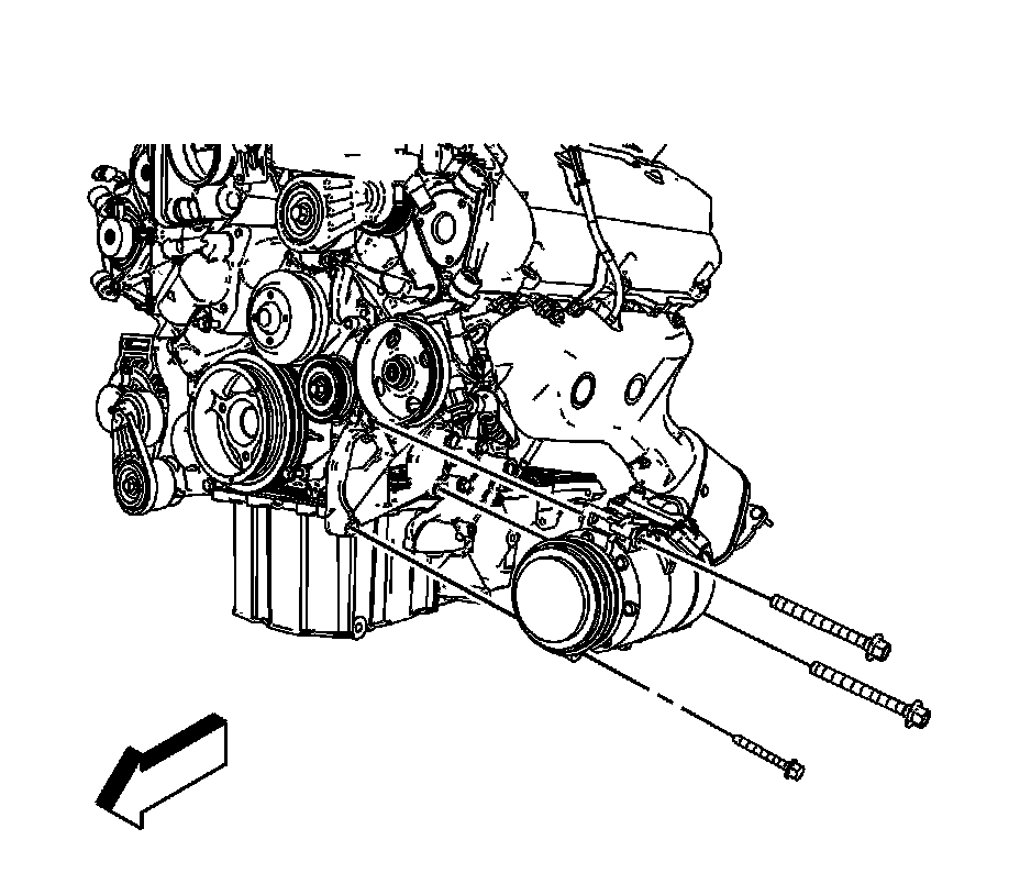 3. Remove the drive belt tensioner. Refer to Drive Belt Tensioner Replacement - Air Conditioning, Power Steering, and Water Pump (Drive Belt Tensioner Replacement - Air Conditioning, Power Steering, and Water Pump).