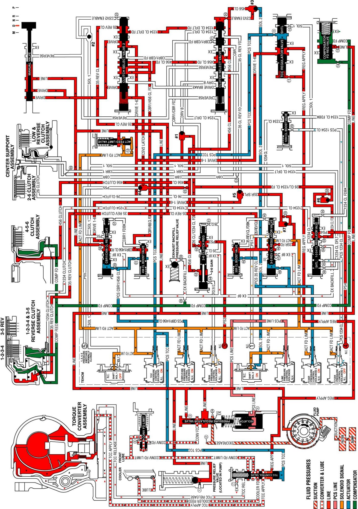 The 35 reverse clutch fluid passes through the clutch select valve 2 and enters the 1234 clutch default feed fluid circuit. The 1234 clutch default feed fluid is then routed to the clutch select valve 3.