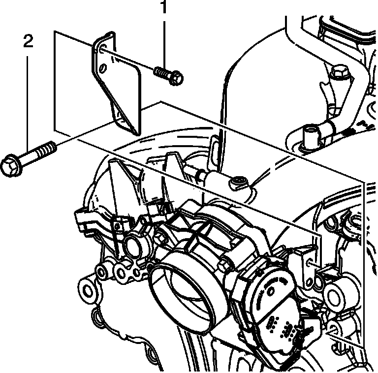 2. Remove the intake manifold brace bolts (1 and 2).