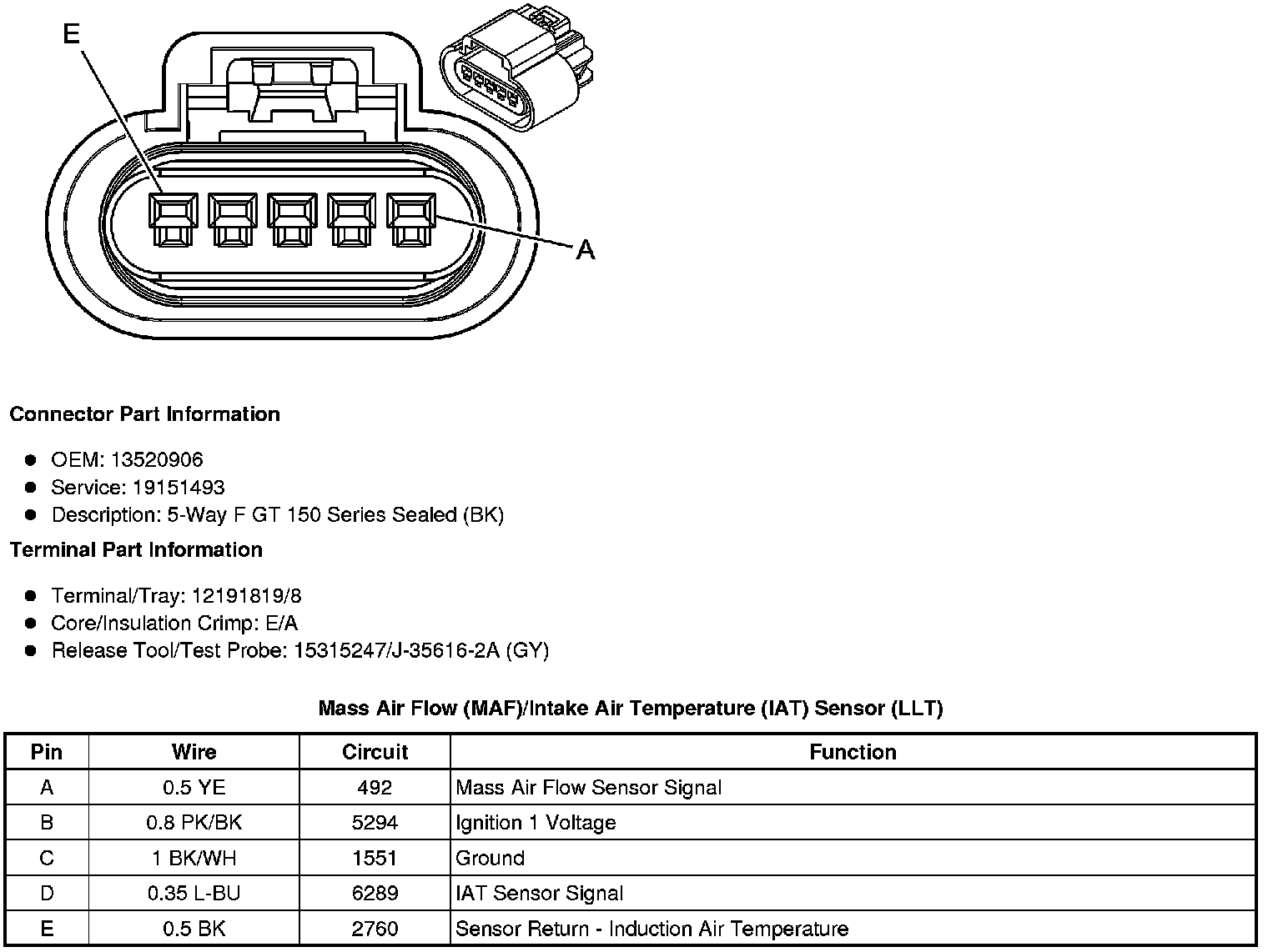 Mass Air Flow (MAF)/Intake Air Temperature (IAT) Sensor (LLT)