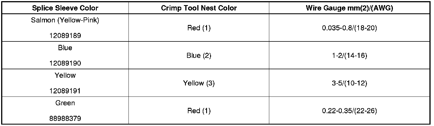 4. Select the proper DuraSeal splice sleeve according to the wire size. Refer to the above table at the beginning of the repair procedure for the color coding of the DuraSeal splice sleeves and the crimp tool nests.