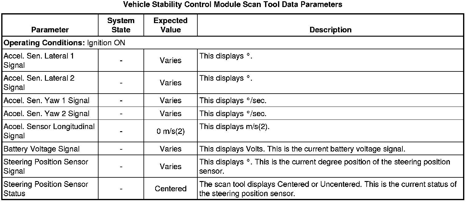 Vehicle Stability Control Module Scan Tool Information