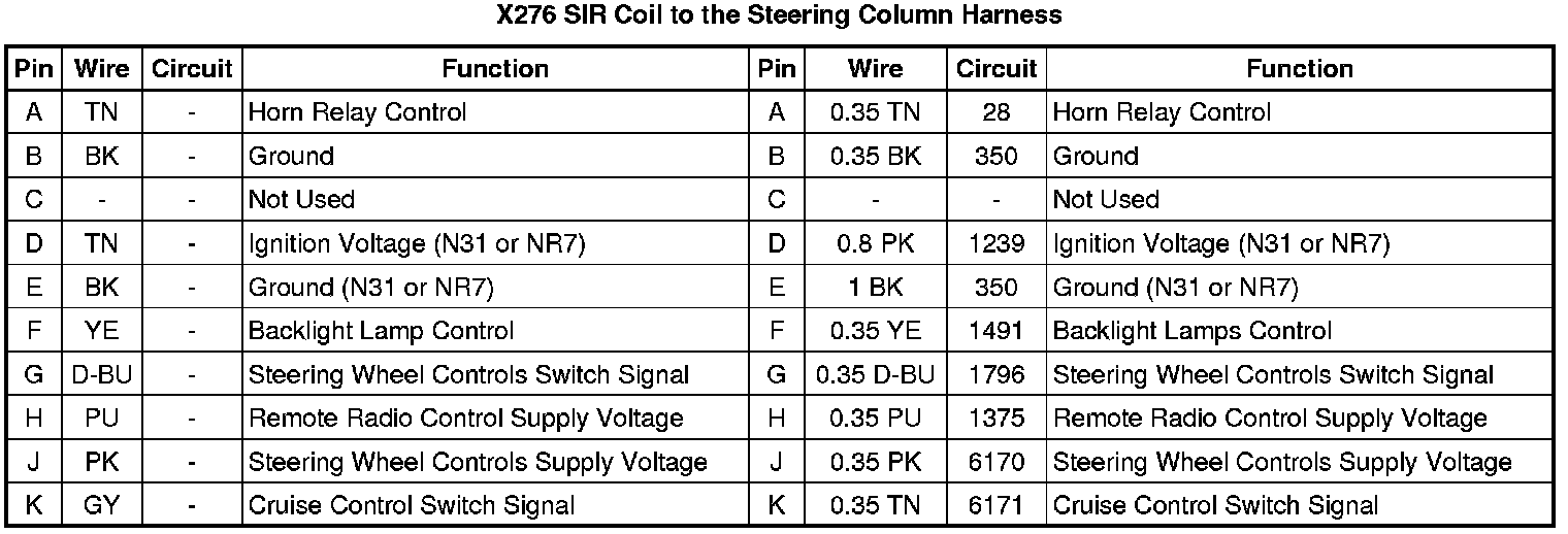 X276 SIR Coil to the Steering Column Harness