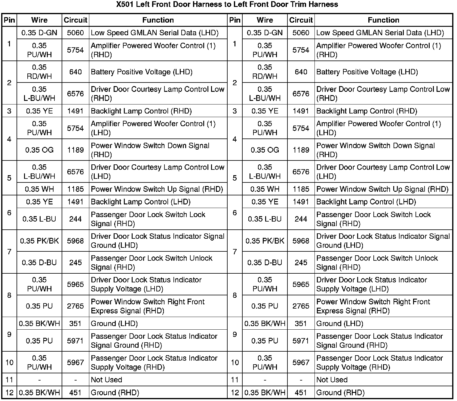 X501 Left Front Door Harness to Left Front Door Trim Harness